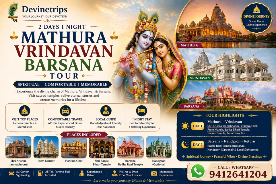 2 Days 1 Night Mathura Vrindavan Barsana Tour package.